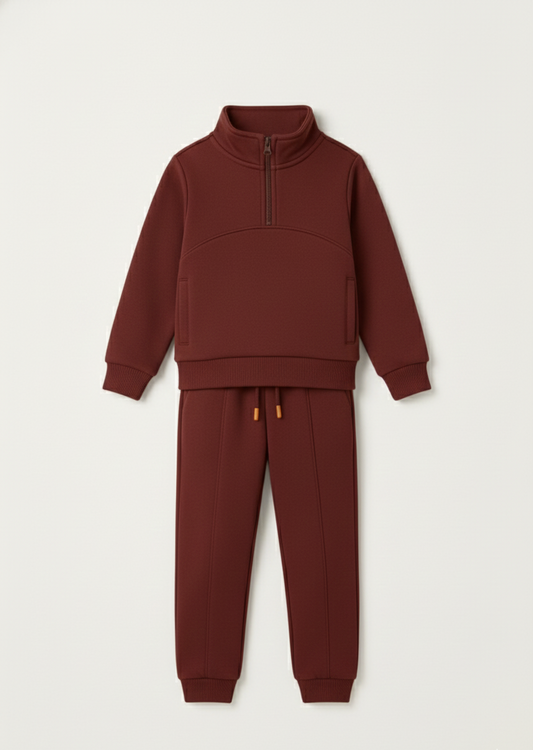 Premium Fleece Unisex Half Zipper Jogger Suit - Maroon