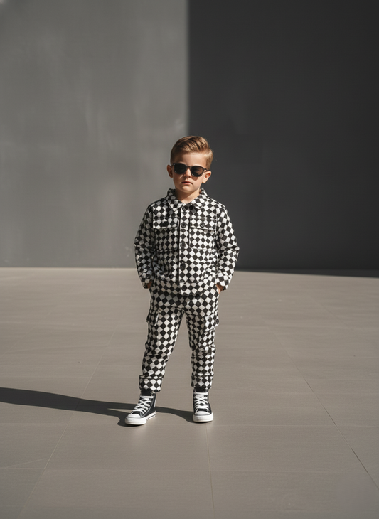 Corduroy Co-ord set for boys- checkboard Black cc10
