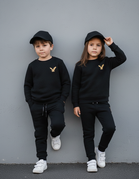 Premium Quilted Fleece Unisex Jogger Suit for Kids - Black
