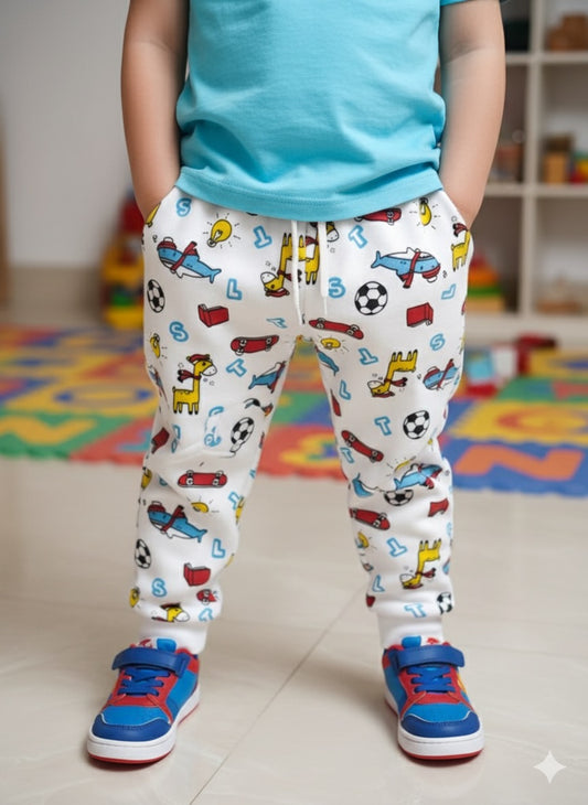Fido Dido Fleece Trousers with Cartoon Print -Blue