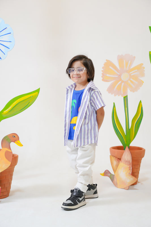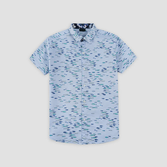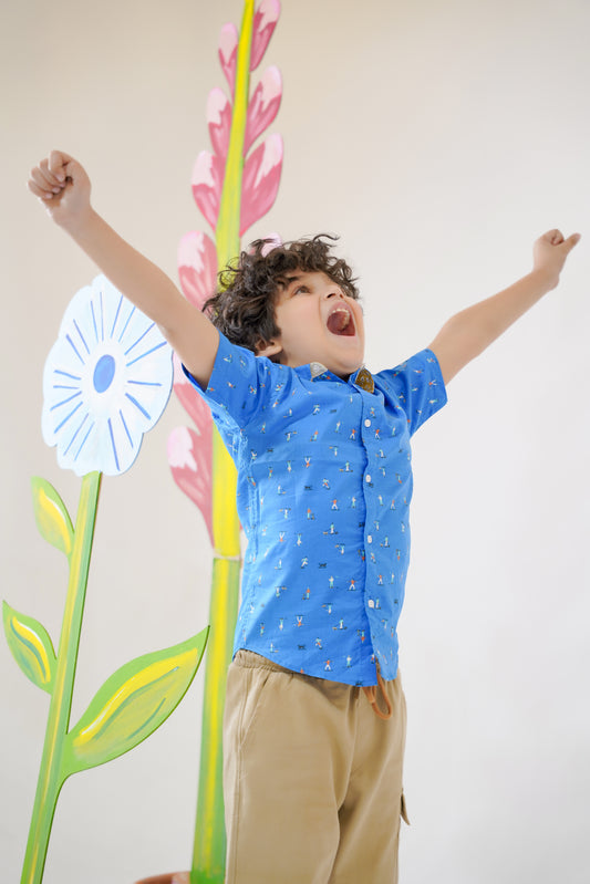Playful Printed Royal Blue Casual Shirt -BCS01
