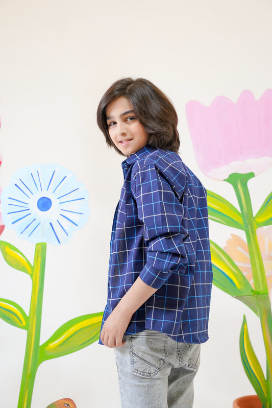 Blue & White Chekered Double Shirt -White Inner -DS116