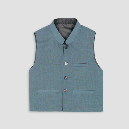 Blue n Gray Self Print with Loops Kurta Trouser -Father Son Duos
