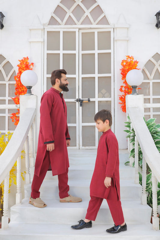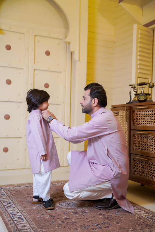 Embroidered Motif Pastel Pink Kurta Trouser - Father Son Duos