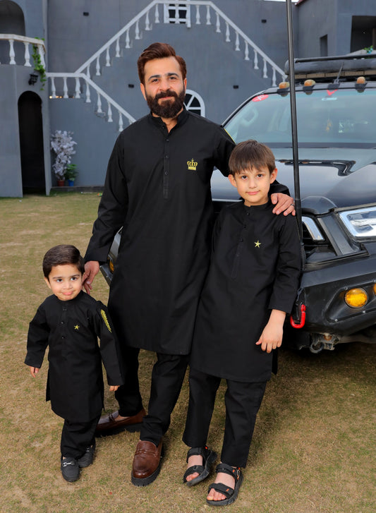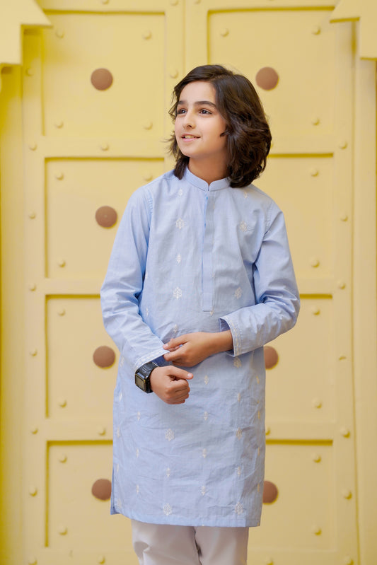 Embroidered Motif Sky Blue Kurta Trouser - Father Son Duos