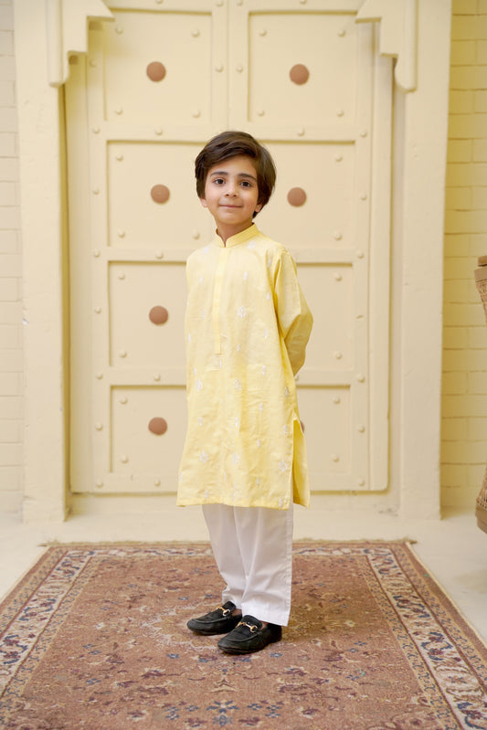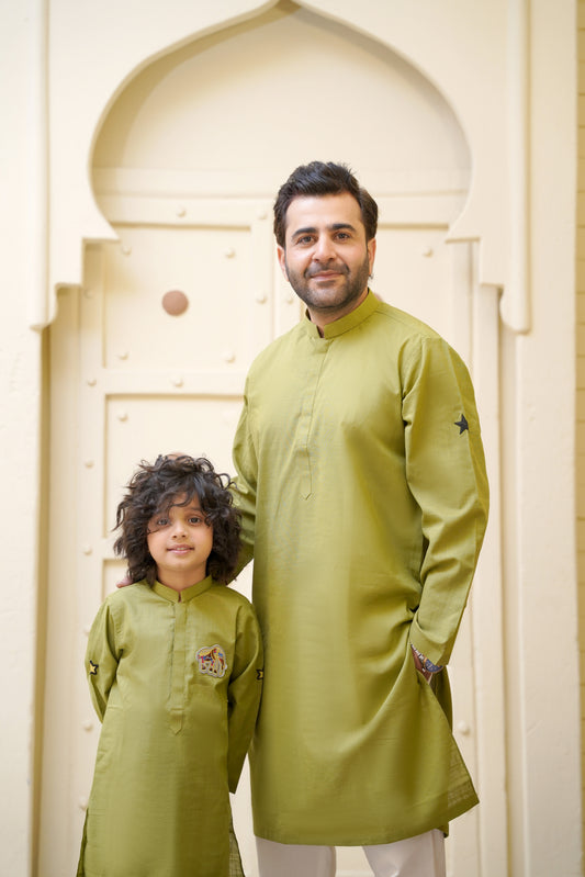 Embroidered Motif Lime Kurta Trouser - Father Son Duos