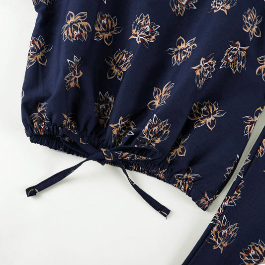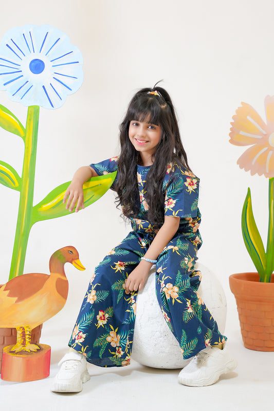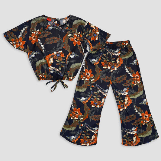 Navy Floral -Crop-top with Bell Bottom -CT159