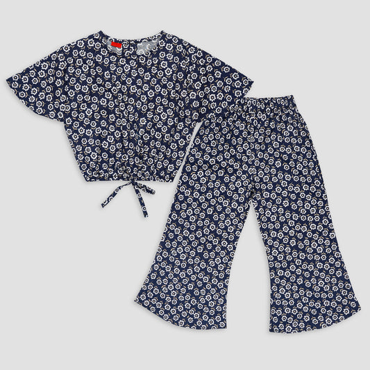 Navy Printed -Crop-top with Bell Bottom- CT115