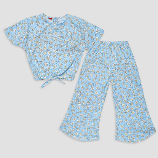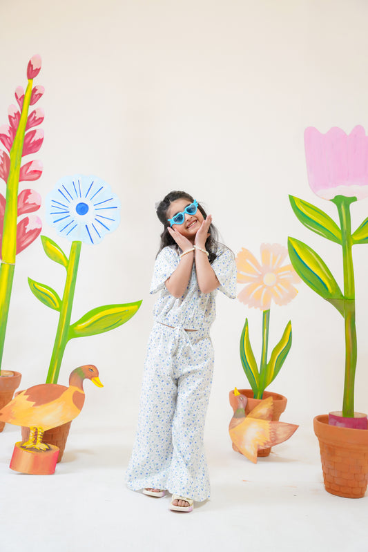 Floral Sky-Crop-top with Bell Bottom -CT171