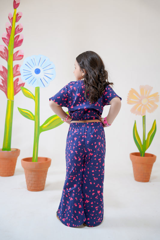 Blue with Pink Hearts crop-top with Bell Bottom -CT139
