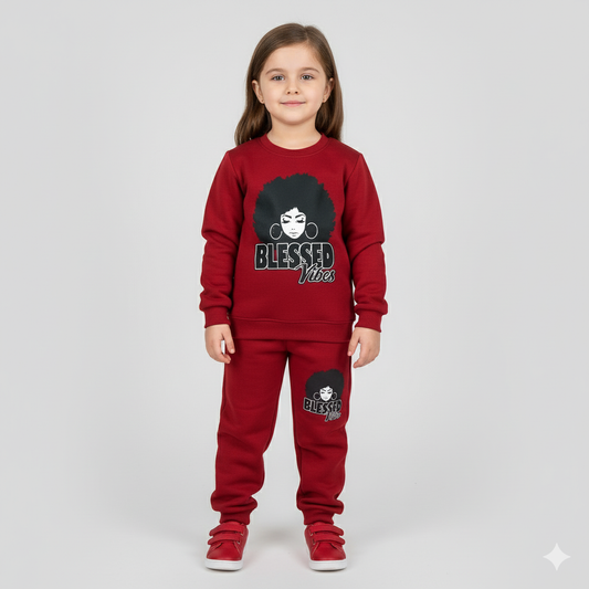 Blessed Vibes - Maroon Fleece Jogger Suits
