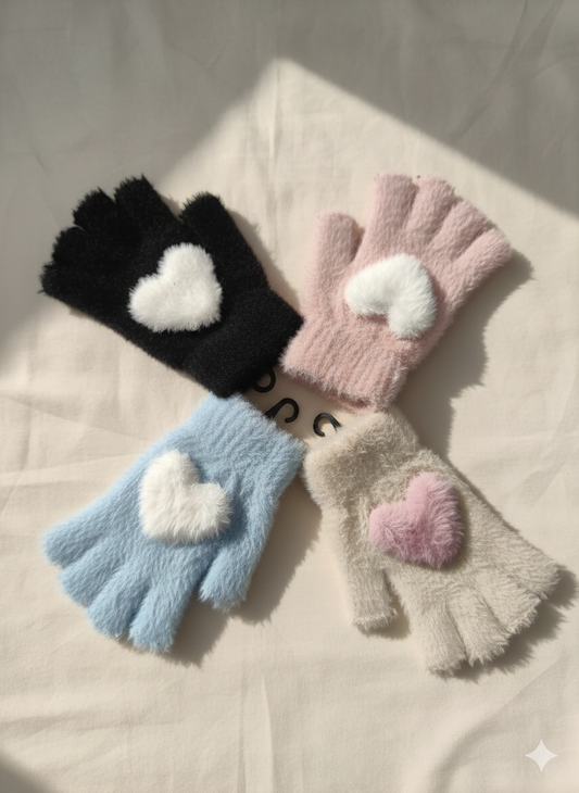 Ladies Premium Warm Fingerless Plush Gloves - Hearts