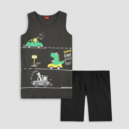 Funky Cotton Shirt with Shorts Set |Grey Roar -FS1004