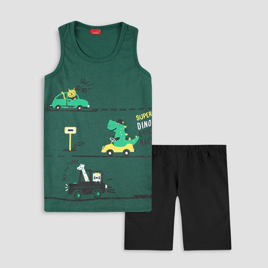 Funky Cotton Shirt with Shorts Set |Aqua Dino Valley -FS1006