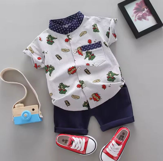 Funky Cotton Shirt with Shorts Set |Sky Trynosuraus -FS1016