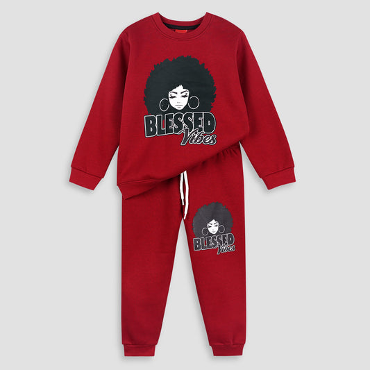 Blessed Vibes - Maroon Fleece Jogger Suits