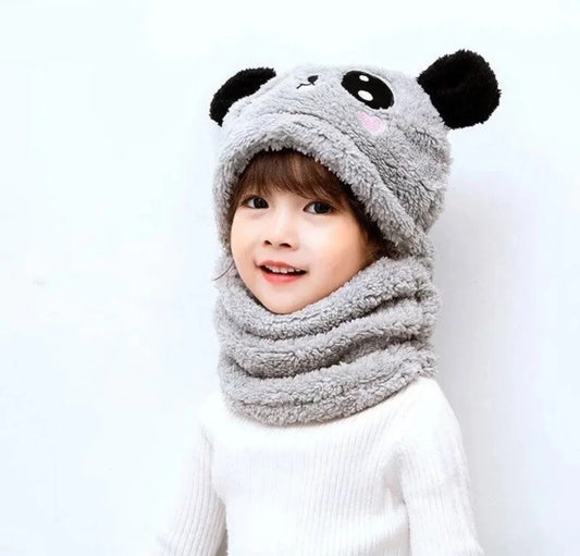 BC112 - Plush Panda Cap with neck Warmer - Free size