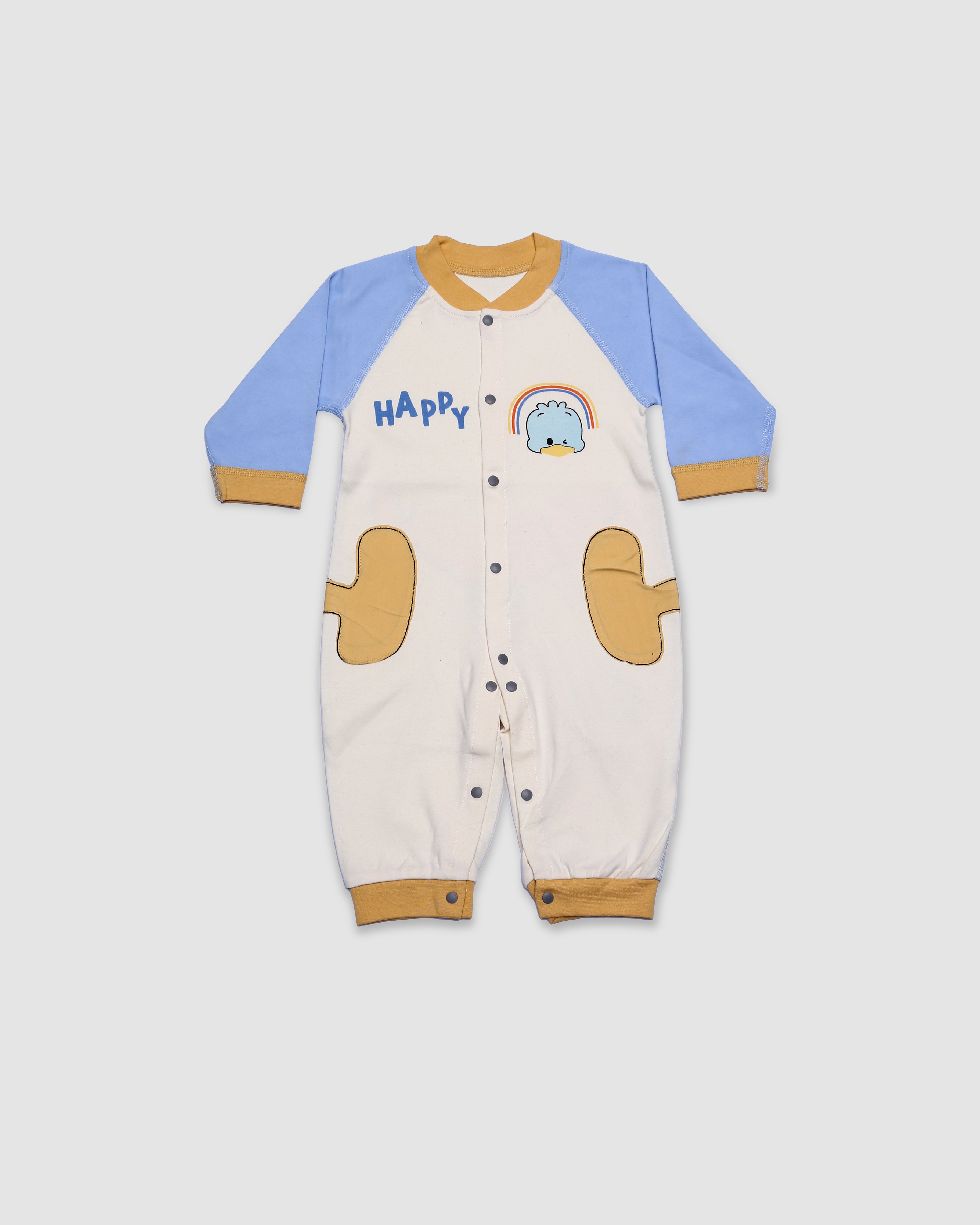 This full sleeves baby romper in happy blue is the perfect addition to your little one's wardrobe. Made with high-quality fabric, it provides comfort and warmth for your baby. The classic design and full sleeves make it suitable for any occasion. Give your baby the gift of style and comfort.